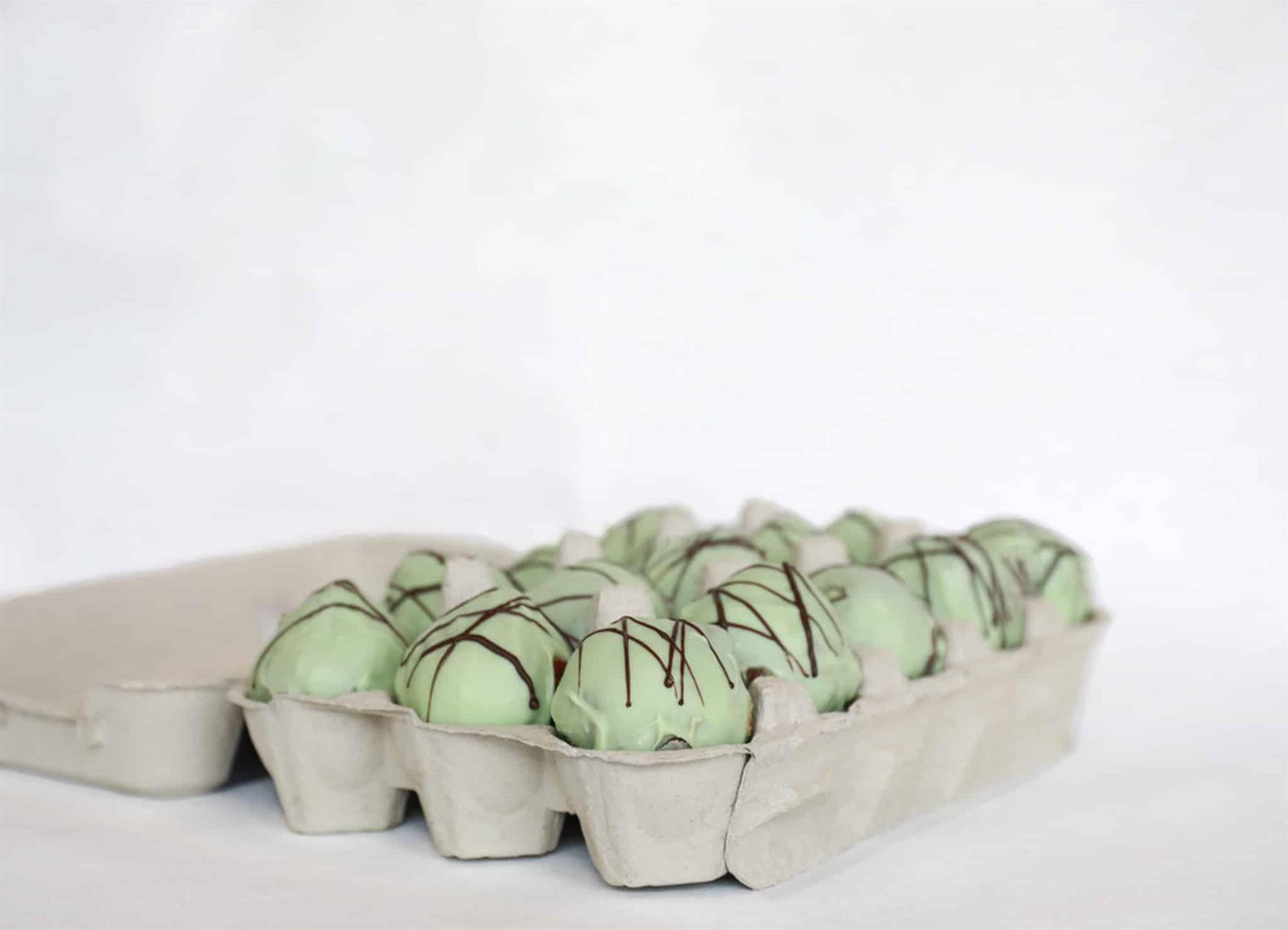 En gammel kending er tilbage. Det er vores romkugle med sød limechokolade med fyld fra vores prisvindende romkugle. Sælges i pakker af 15 stk.
